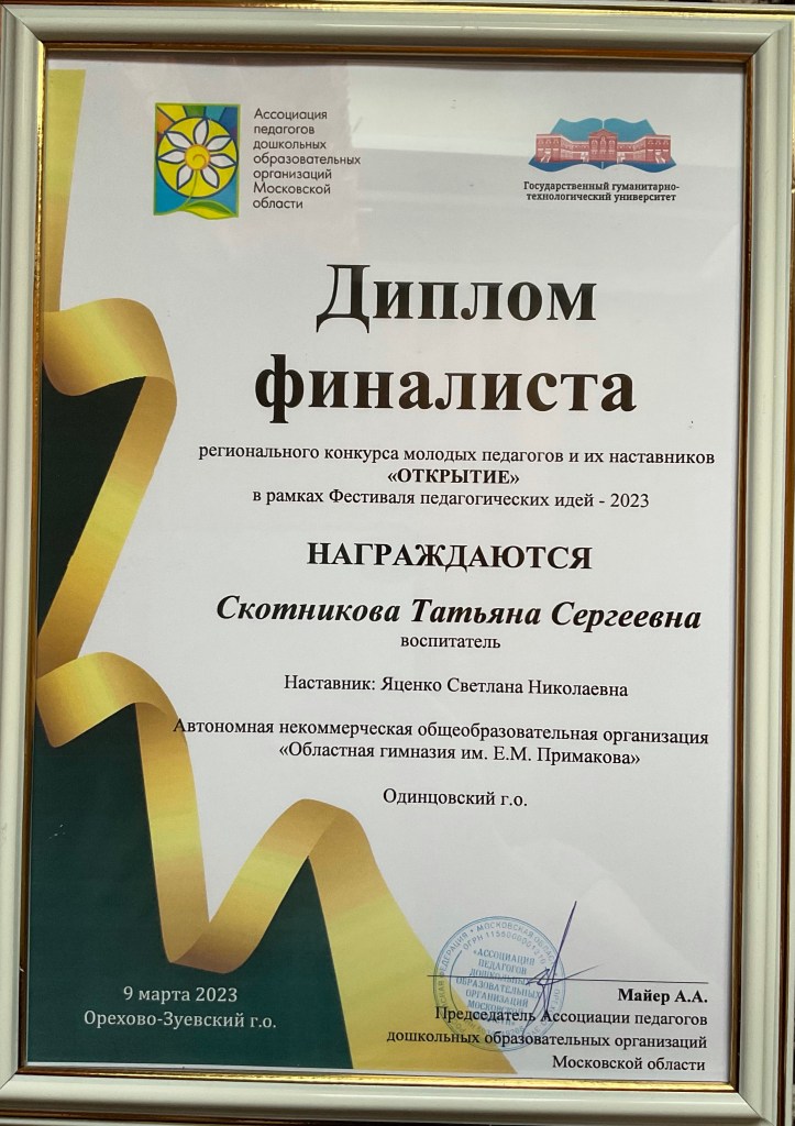 В феврале 2023 года Татьяна Сергеевна принимала участие в региональном конкурсе для молодых педагогов и наставников «Открытие». Конкурс проходил в два этапа: заочный и очный.