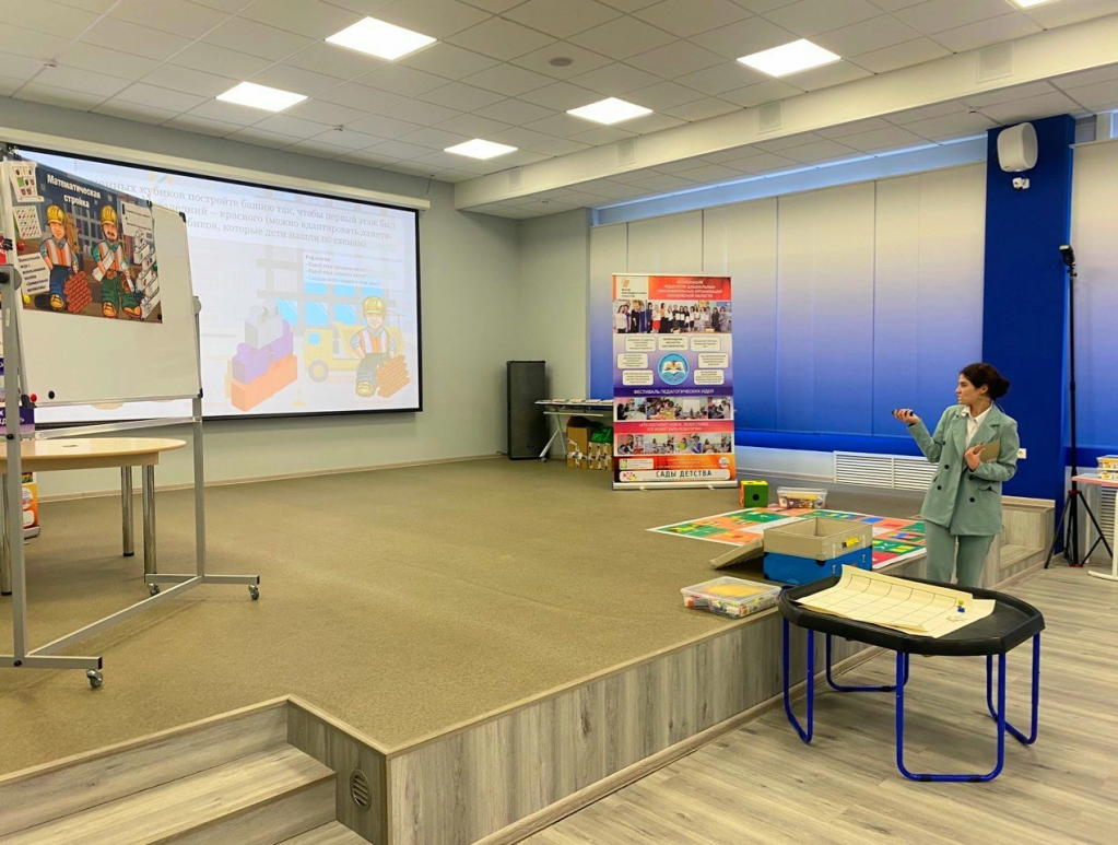 А также презентовала авторскую дидактическую игру «Математическая стройка» с использованием пособия «Занимательная математика».