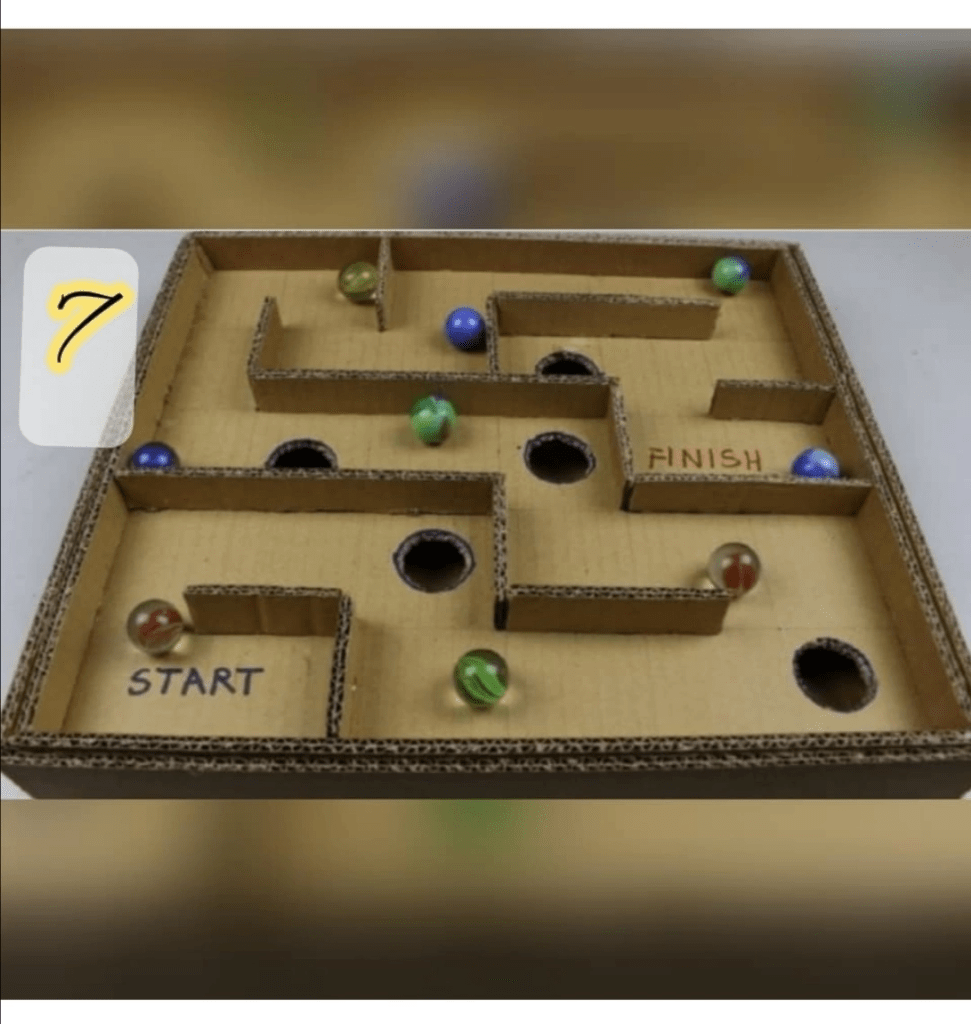 Для создания понадобятся: картонная коробка, шарик, фломастеры.