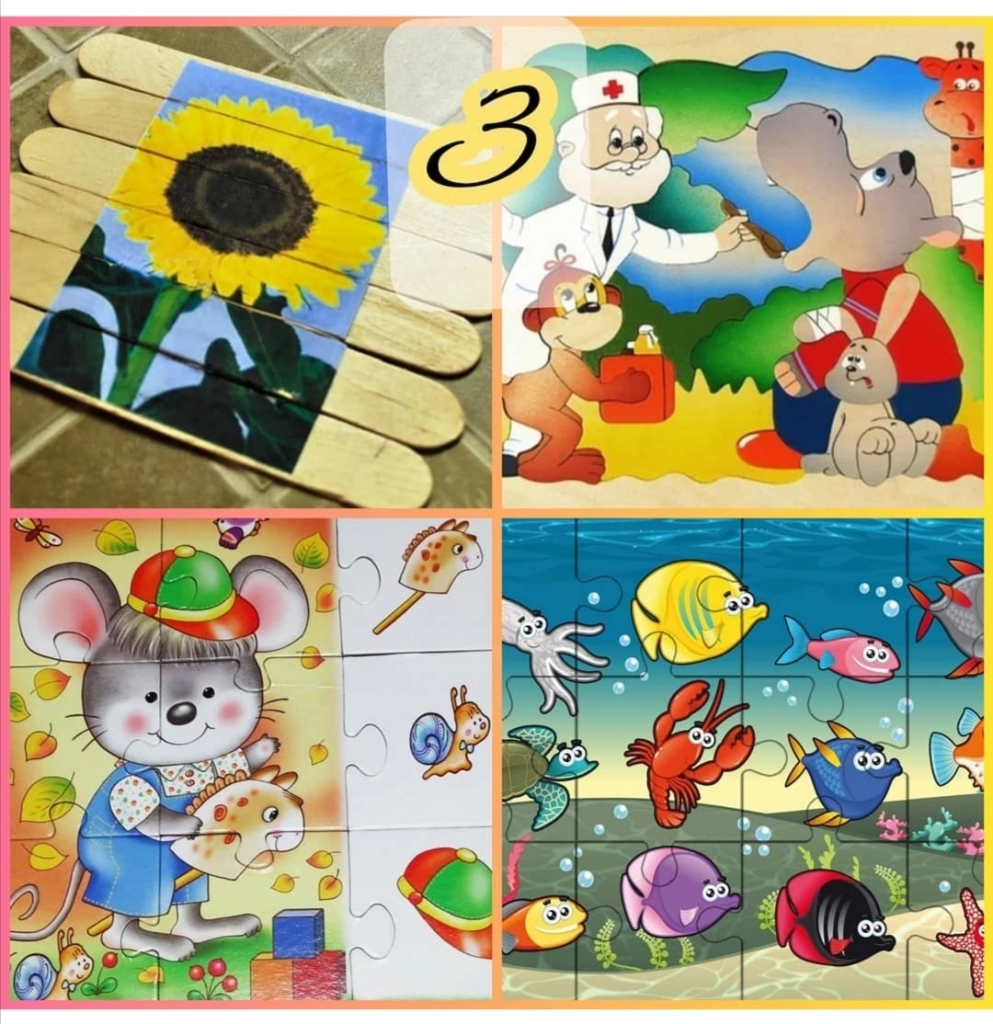 3. «Пазлы». Настольная игра на внимание, которая поможет вам провести время с пользой и увлечением. Игру можно распечатать или нарисовать просто выберите картинку которая вам нравится, распечатайте и порежьте ее на кусочки. Пазл готов!